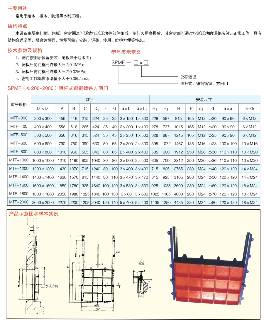 镶铜铸铁方闸门
